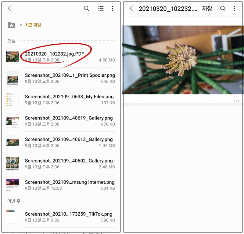 갤럭시 스마트폰의 인쇄 기능을 이용해서 이미지 파일을 쉽게 PDF파일로 변환할 수 있다.
