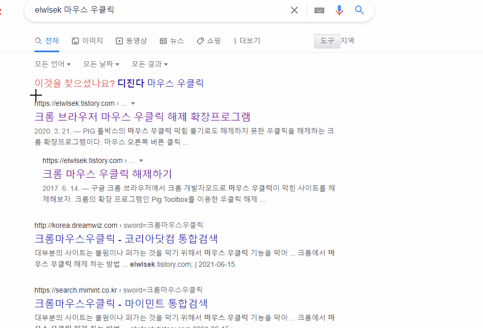 OCR 스캔을 하고 싶은 사이트에서 해당 아이콘을 클릭하면 아래와 같이 마우스 포인트가 +로 표시된다.