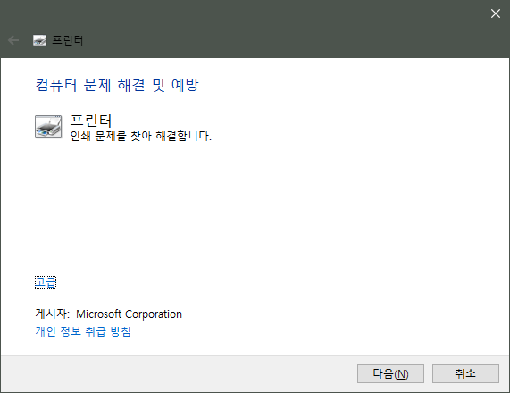 프린터 문제 해결사가 실행된다.