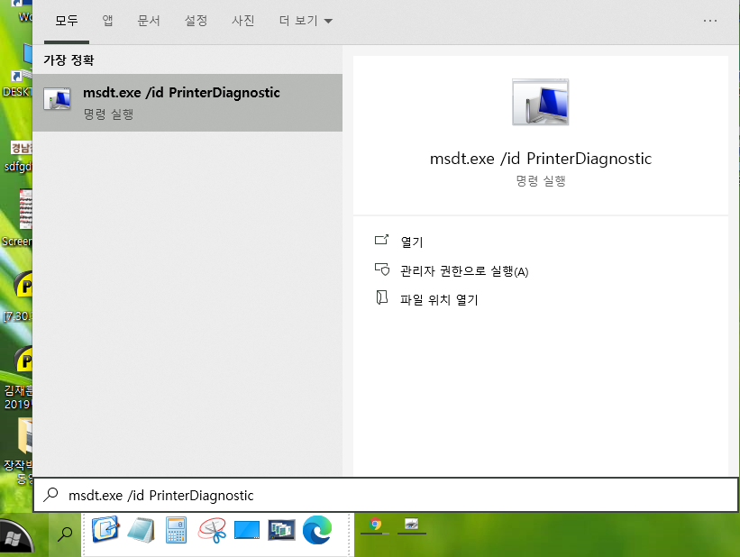 윈도우 자체 프린터 문제 해결사를 실행하려면 검색창에