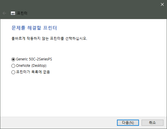 오류나 문제가 있는 프린터를 선택해 주면 된다.
